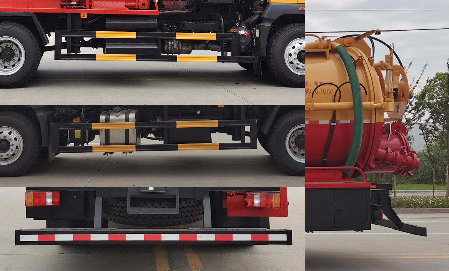 | 配置 | ABS型號:XH-KQ4S4M-E01,CM4XL-4S/4M;ABS生產企業:廣州市西合汽車電子裝備有限公司,廣州瑞立科密汽車電子股份有限公司;選裝描述:隨底盤選裝駕駛室;側后防護情況:側/后防護材料為冷彎型鋼/Q235,焊接;后防護截面尺寸120×50mm,下邊緣離地高500mm;罐體有效容積(立方米)、罐體外形尺寸(mm):罐體尺寸為(直段長×直徑)(mm):4700×1950,其中罐體前段為清水罐(直段長2040mm);后段為污水罐(直段長2660mm)。污水罐有效容積6.76立方米;清水罐有效容積5.41立方米;專用功能及裝置:該車用于下水道清洗或吸污,主要專用裝置為吸污裝置總成、清洗裝置總成;其他說明:僅采用軸距(mm):4700。兩罐不能同時滿載;選裝前面罩。卸料方式為舉升后卸式。 | ||