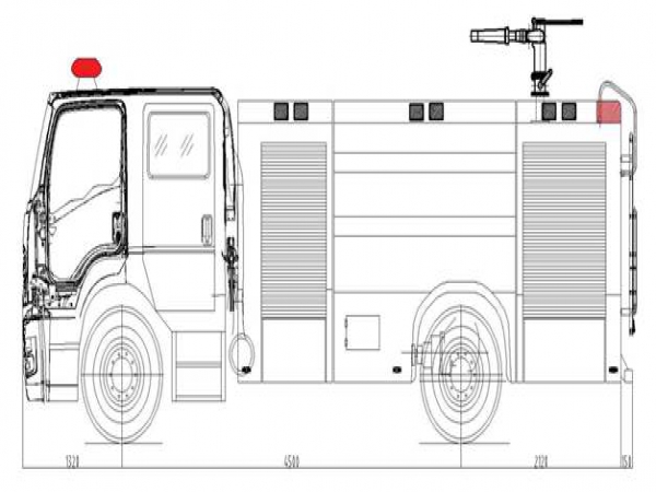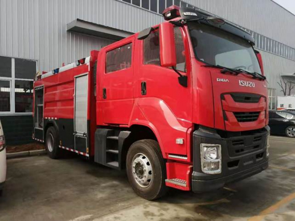 7噸消防車采用慶鈴汽車股份有限公司QL1180EQFRY 型二類汽車底盤,改制雙排駕駛室,乘員2+3人,該車駕乘舒適輕便。上裝采用內(nèi)藏式水罐,整車載液量水為4650kg,泡沫為1950kg。器材箱采用高質量鋁合金卷簾門。底盤取力,發(fā)動機型號為6HK1-TCG61,最大功率177kW,通過萬向聯(lián)軸器驅動安裝在汽車尾部泵房里的上海雄真CB10/60型常壓消防泵,可在1.0MPa下穩(wěn)定輸出60L/s的流量;車頂安裝成都威斯特消防器材有限責任公司生產(chǎn)的PL8/48型消防炮(泡沫消防車),流量48L/s,對應壓力0.8MPa,最大承壓1.3MPa,射程 水≥70m 泡沫≥60m,可360°旋轉。同時該車具有比功率大、綜合性能強、操控集中簡便等特點。